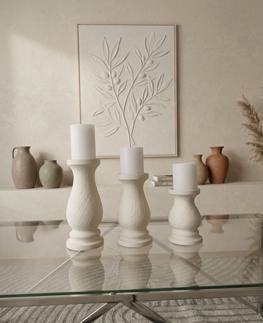 סט פמוטים שלושה נרות – קסם של פשטות וחמימות בניחוח Jade. סט פמוטים מעוצב בקווים קלאסיים ונקיים, עשוי מחומר בעל מראה אבן טבעי עדין. שלושת הפמוטים בגבהים שונים יוצרים קומפוזיציה הרמונית ומרשימה על השולחן. מושלם לאירוח, לסעודות חג, ערבים רומנטיים או פשוט להוספת אווירה חמה ודקורטיבית לבית. גדלים: פמוט נר ענק- 33 ס"מ פמוט נר בינוני- 28 ס"מ פמוט נר קטן- 23 ס"מ