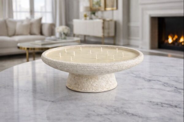 נר Stone Aura הוא פריט עיצוב יוקרתי עשוי אבן טבעית, המשלב חומר גלם גולמי עם קווים נקיים ואלגנטיים.